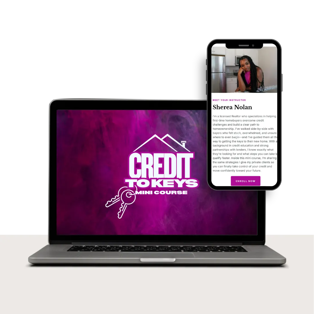 I'm a licensed Realtor who specializes in helping first-time homebuyers overcome credit challenges and build a clear path to homeownership. I’ve walked side-by-side with buyers who felt stuck, overwhelmed, and unsure where to even begin and I’ve guided them all the way to getting the keys to their new home. Through my experience helping clients improve their credit and working closely with my lender, I’ve learned exactly what lenders look for and the steps you can take to qualify faster. Inside this mini course, I’m sharing the same strategies I give my private clients so you can finally take control of your credit and move confidently toward your future.